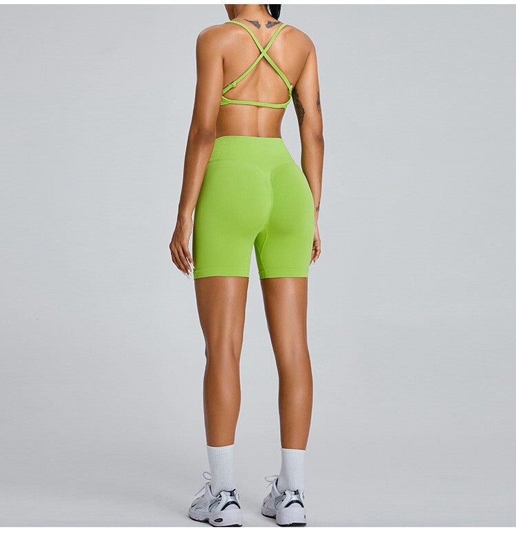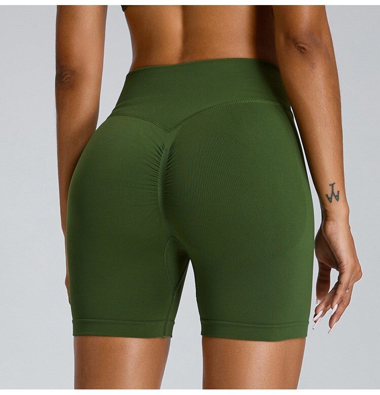 Damen Nahtlose Dreipunkt-Fitness-Shorts, hoch taillierte,Po-Lifting-Sportshorts, eng anliegende, schnell trocknende Yoga-Shorts