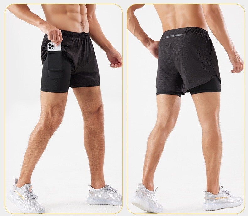 Unisex Sportshorts,Handytasche, Marathon, Leichtathletik, laufen, lockere Dreiviertelhose, schnell trocknend, doppellagige Fitness-Shorts