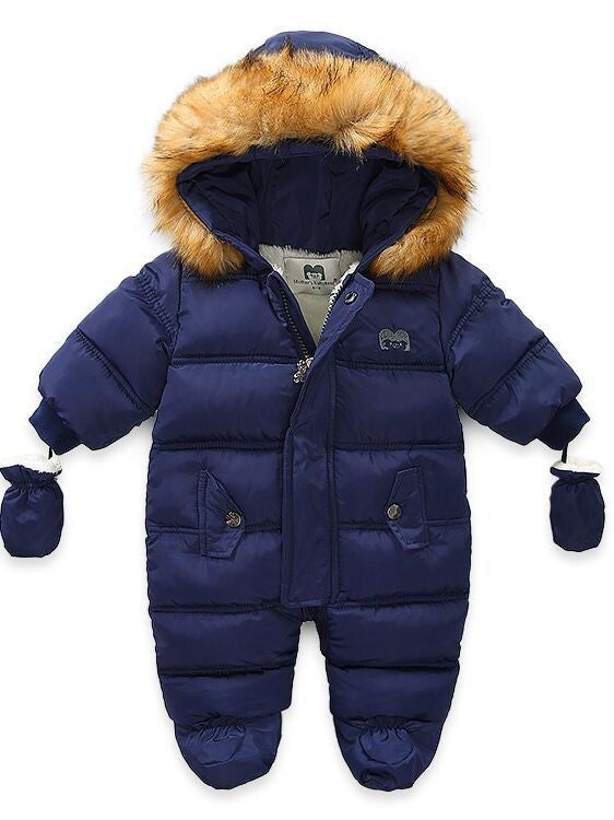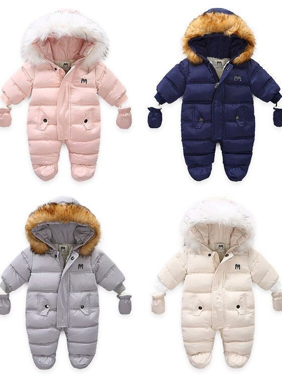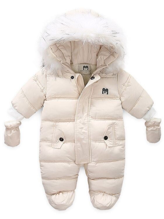 Baby Samt Overall, mit Doppellinien-Pelzkragen
