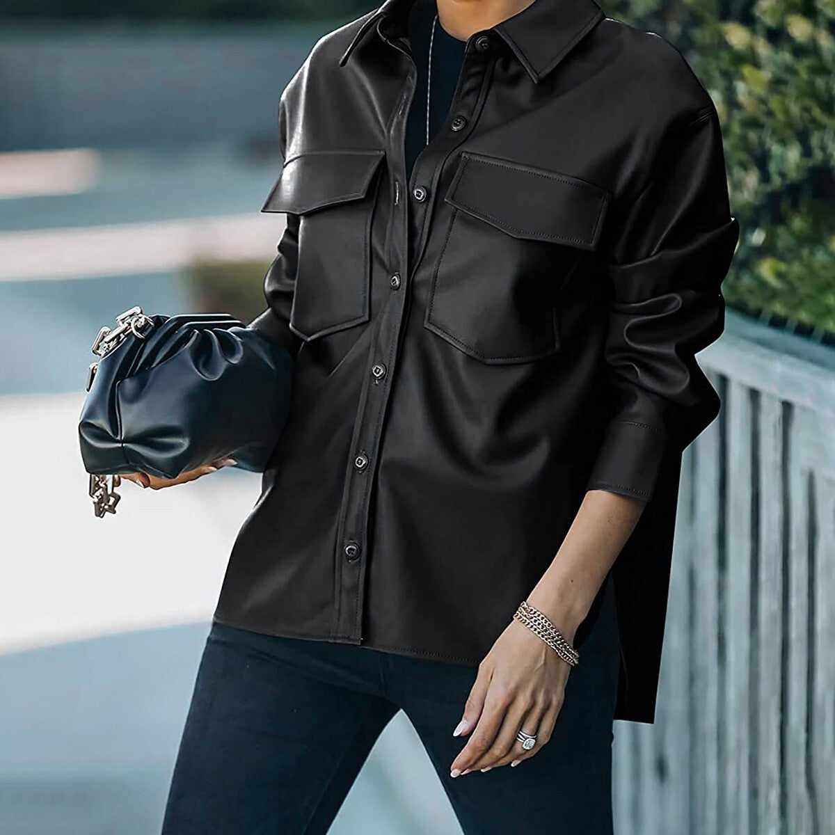 Die Damen-Lederjacke mit Reverskragen ist ein stilvolles und vielseitiges Kleidungsstück, das in verschiedenen Farben wie Weinrot, Khaki, Weiß und Schwarz erhältlich ist. Hergestellt aus hochwertigem Lederimitat, bietet diese Jacke nicht nur ein elegantes Aussehen, sondern auch einen hohen Tragekomfort und eine einfache Pflege. Die gerade Schnittführung sorgt für eine schmeichelhafte Silhouette, die sich ideal für verschiedene Anlässe eignet, sei es im Alltag oder zu besonderen Anlässen. Die Jacke ist in den Größen S bis 3XL erhältlich, sodass sie für eine Vielzahl von Körperformen und -größen geeignet ist. Kombinieren Sie diese Jacke mit Jeans für einen lässigen Look oder mit einem Kleid für einen eleganten Auftritt – die Möglichkeiten sind nahezu unbegrenzt.
