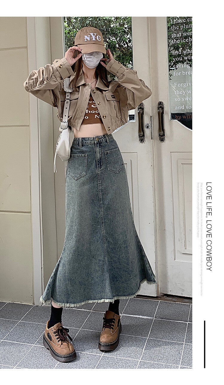 Dieser Damen Jeansrock im angesagten Used Look vereint lässigen Stil mit hohem Tragekomfort. Der Rock verfügt über einen praktischen Knopf- und Reißverschluss, der ein einfaches An- und Ausziehen ermöglicht. Die hohen Taschen an der Vorderseite bieten nicht nur Platz für kleine Essentials, sondern setzen auch modische Akzente. Die hohe Taille sorgt für eine schmeichelhafte Silhouette und lässt sich ideal mit verschiedenen Oberteilen kombinieren. Der Jeansrock ist mit Gürtelschlaufen ausgestattet, die es Ihnen ermöglichen, ihn mit einem Gürtel zu stylen und so Ihren Look individuell zu gestalten. Die Ziernähte an der Vorderseite verleihen dem Rock eine besondere Note und unterstreichen den lässigen Charakter des Designs. Hergestellt aus hochwertigem Baumwoll-Denim mit einem Anteil an Polyester, bietet dieser Rock nicht nur eine angenehme Passform, sondern auch eine hohe Strapazierfähigkeit, die ihn zum perfekten Begleiter für den Alltag macht.