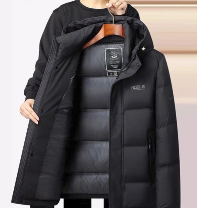 Diese luxuriöse Daunenjacke für Herren vereint stilvolles Design mit herausragender Funktionalität und ist die perfekte Wahl für Business-Casual-Anlässe. Sie bietet einen extremen Kälteschutz, der Temperaturen von -30℃ bis -15℃ standhält, und sorgt somit für wohlige Wärme selbst in den kältesten Monaten. Hergestellt aus einem hochwertigen Materialmix, der Faltenfestigkeit, Winddichtigkeit und Kältebeständigkeit garantiert, ist diese Jacke sowohl praktisch als auch elegant. Die Füllung aus weißen Entendaunen mit einer Bauschkraft von 600 Cuin sorgt für eine hervorragende Isolierung, während der hohe Samtanteil von 86% bis 90% ein luxuriöses Tragegefühl vermittelt. Der Stehkragen und die integrierte Kapuze bieten zusätzlichen Schutz vor Wind und Kälte, während das Hauptgewebe aus Polyester und Nylon für Langlebigkeit und Pflegeleichtigkeit sorgt. Erhältlich in den Farben Cooles Schwarz und Premiumgrau sowie in den Größen M bis XXXXL, ist diese Jacke die ideale Ergänzung für jede stilbewusste Garderobe.