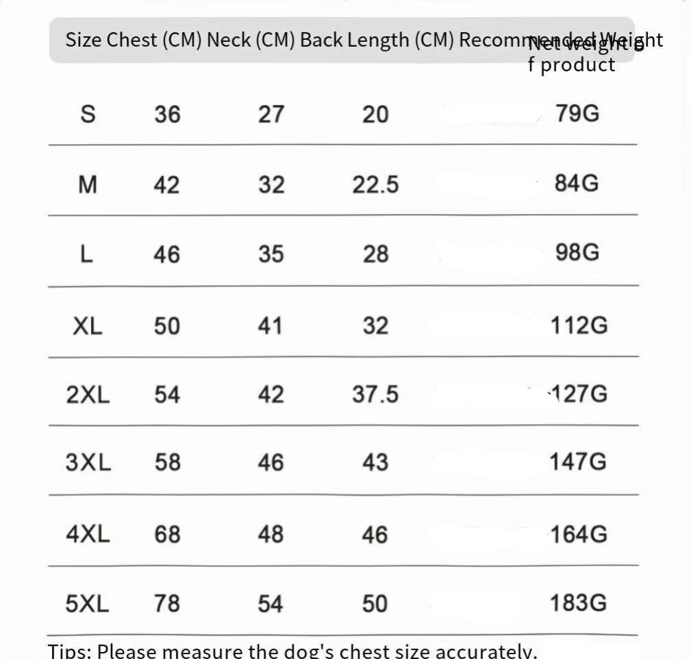 5XL (41-60 Pfund) Brust 78 cm Rückenlänge 50 cm