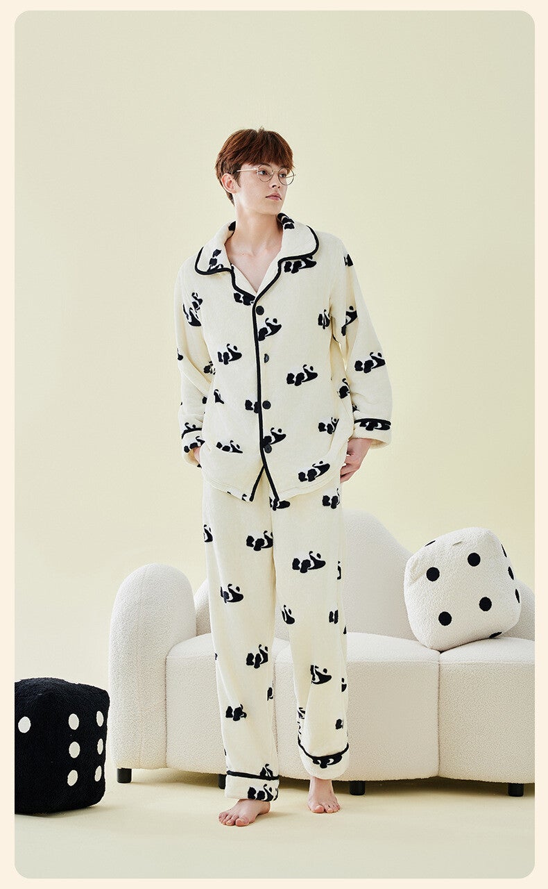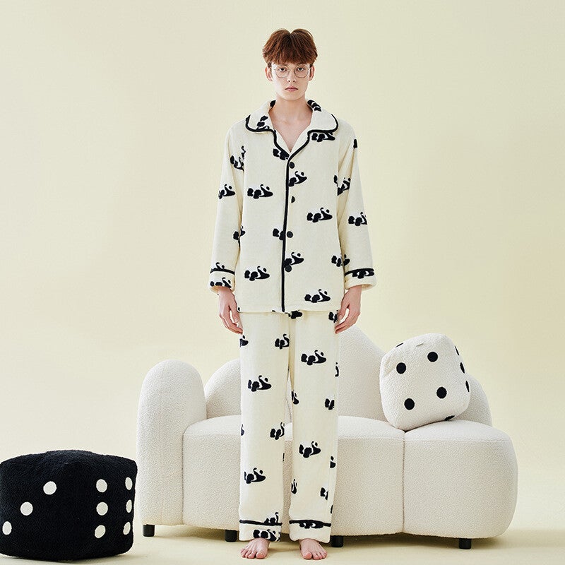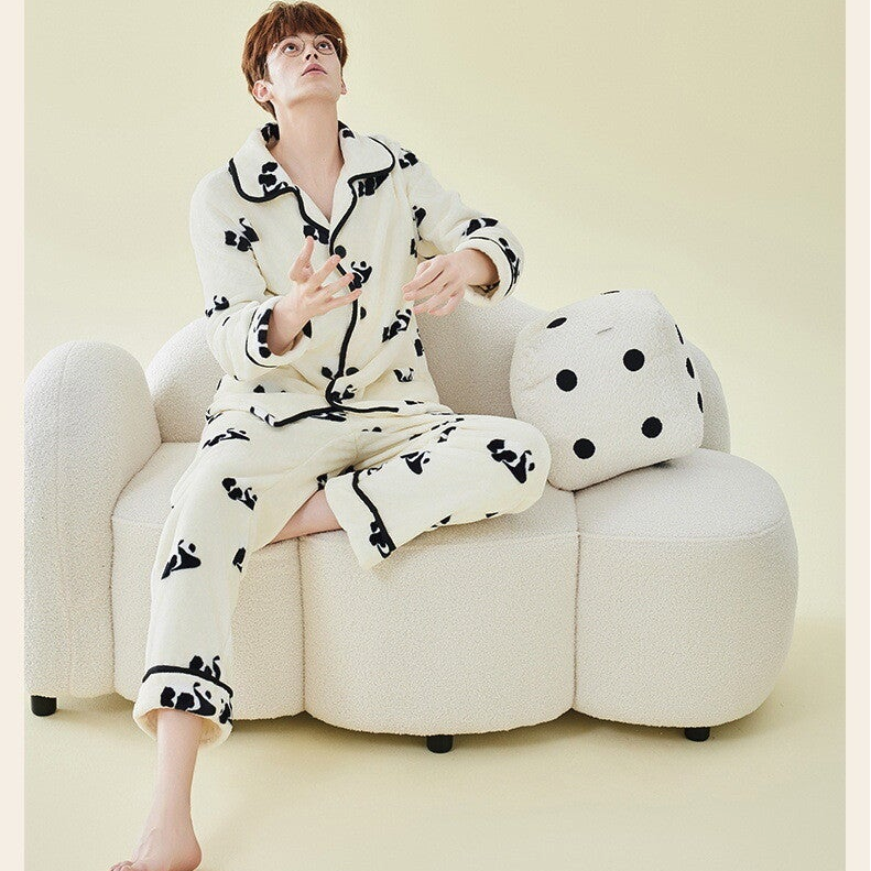Flanell-Pyjama für Damen und Herren, Panda, Katze, Herbst und Winter, Samt