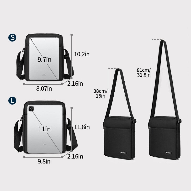 Die modische Umhängetasche für Herren ist die ideale Wahl für stilbewusste Männer, die sowohl im Alltag als auch auf Geschäftsreisen eine praktische und elegante Lösung suchen. Diese Schultertasche vereint lässiges Design mit multifunktionalen Eigenschaften, die sie zu einem unverzichtbaren Begleiter für Outdoor-Aktivitäten und Reisen machen. Hergestellt aus strapazierfähigem Polyester, bietet sie nicht nur eine ansprechende Optik, sondern auch eine hohe Widerstandsfähigkeit gegenüber den Herausforderungen des täglichen Gebrauchs. Das Innenfutter aus Polyester sorgt für zusätzlichen Schutz Ihrer Wertsachen und verleiht der Tasche eine angenehme Haptik. Die Umhängetasche ist in zwei praktischen Größen erhältlich: die große Variante misst 22,5 x 7 x 28,5 cm und die kleine Variante 20 x 6,5 x 25 cm, beide in klassischem Schwarz gehalten. Diese Farbwahl ermöglicht eine mühelose Kombination mit verschiedenen Outfits, sei es im geschäftlichen Umfeld oder in der Freizeit. Die durchdachte Gestaltung der Tasche bietet ausreichend Platz für Laptop, Dokumente und persönliche Gegenstände, während die verstellbaren Schulterriemen für optimalen Tragekomfort sorgen. Egal, ob Sie auf Geschäftsreise sind oder einfach nur einen Tag in der Stadt verbringen, diese Umhängetasche ist die perfekte Lösung für alle Ihre Bedürfnisse.