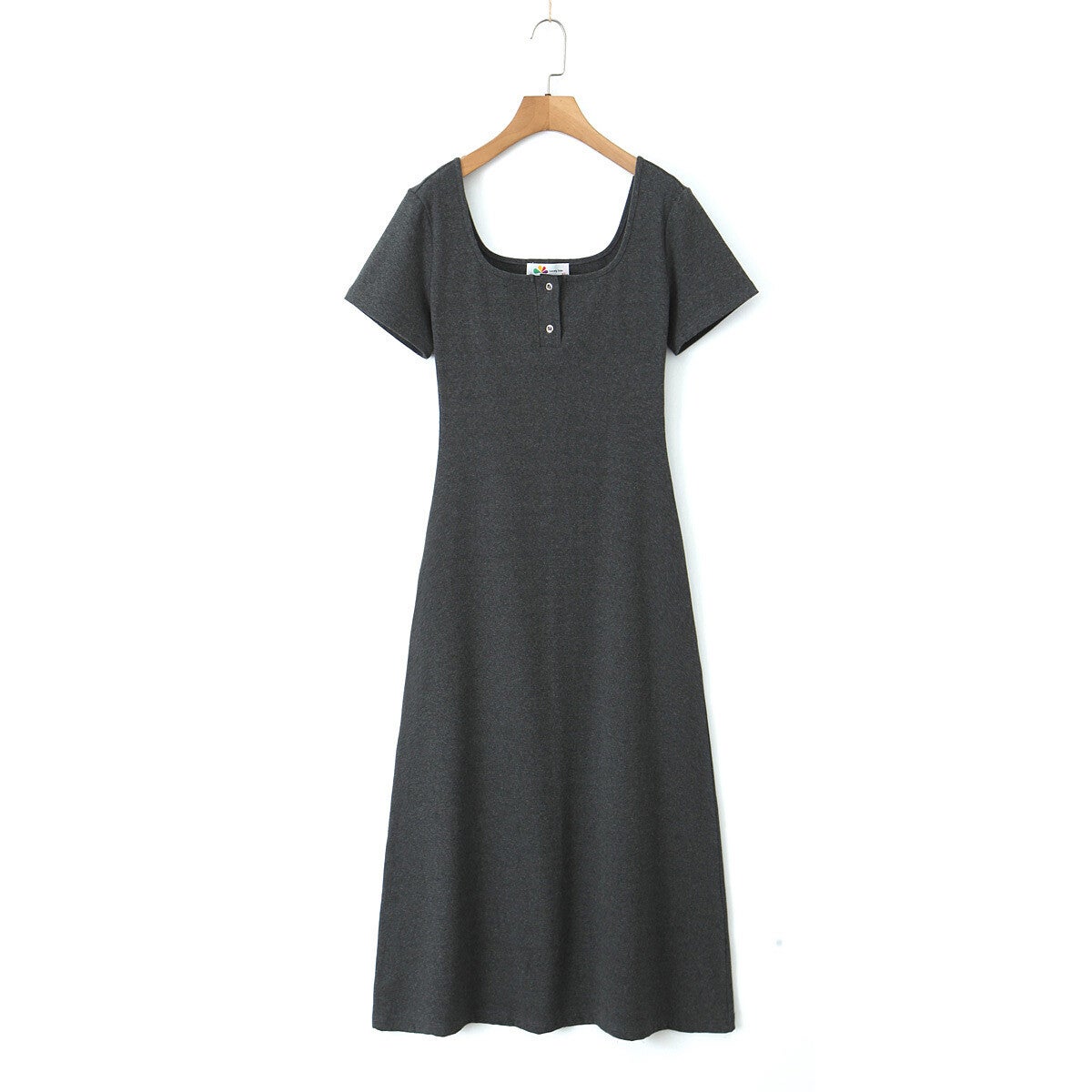 Quadratischer Kragen, Knöpfe, Taille, gestrickter Hosenträger, langer Rock, große Größe, französisches langes Westenkleid