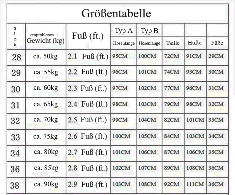 Größe 28, 29, 30, 31, 32, 33, 34, 36, 38