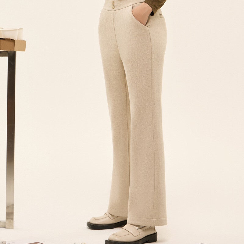 Bootcut-Hose aus Wolle für Damen im Herbst und Winter, weiche und wachsartige Hose mit weitem Bein, Freizeithose
