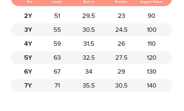 Größe 2Y, 3Y, 4Y, 5Y, 6Y, 7Y