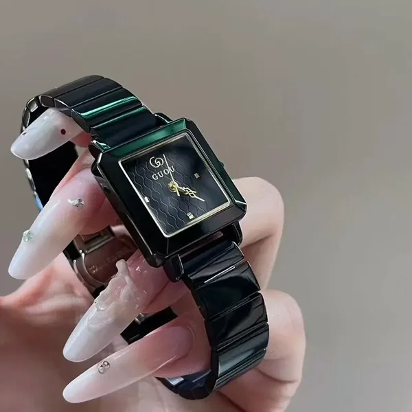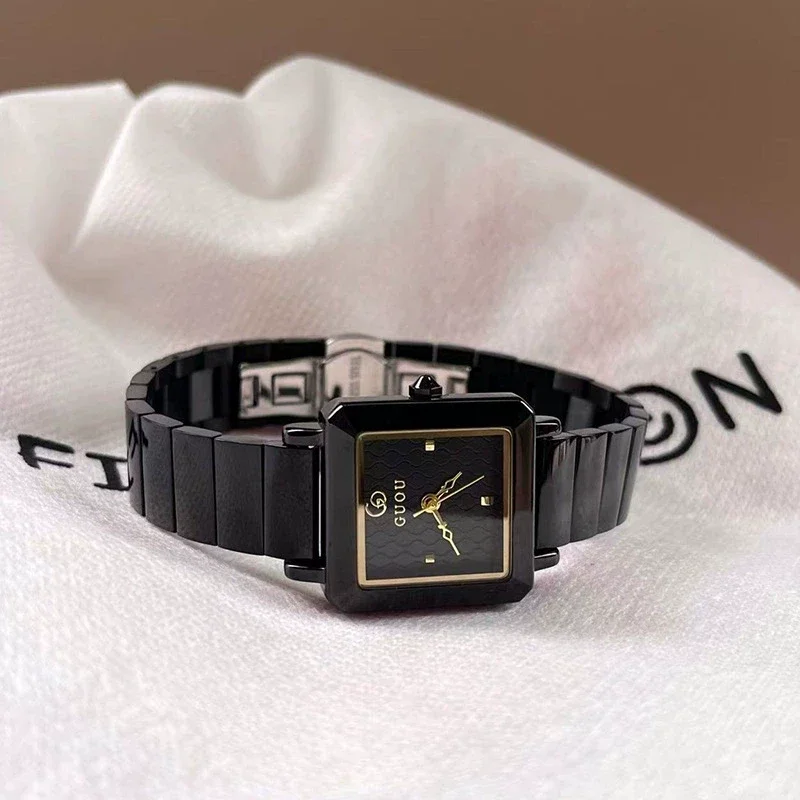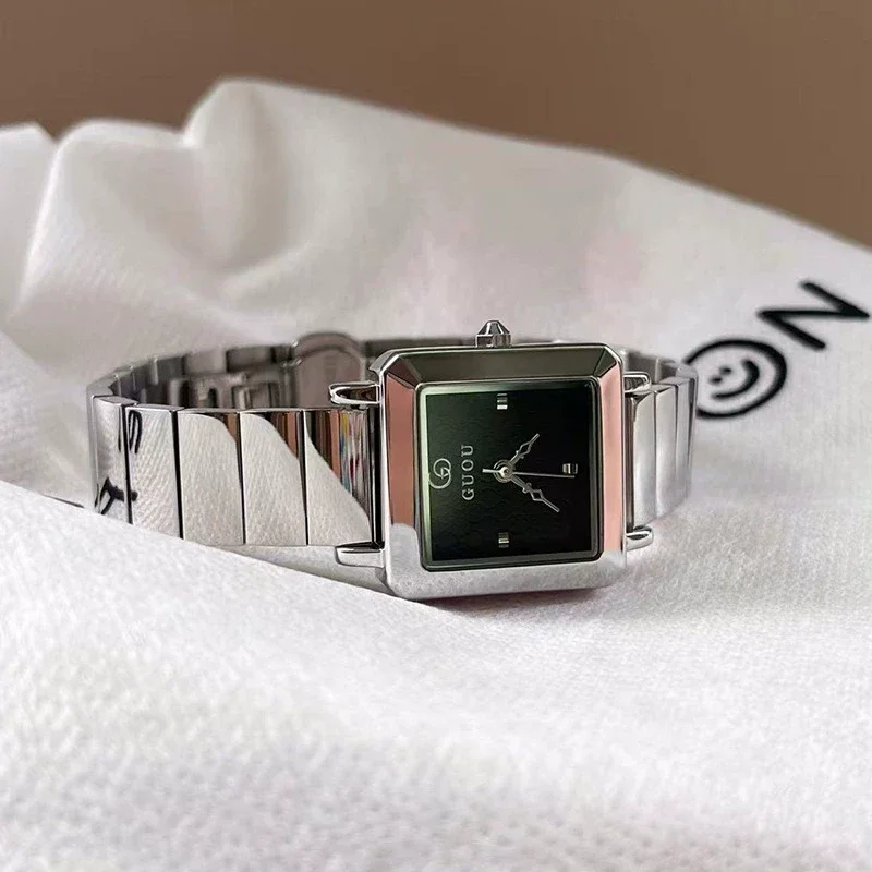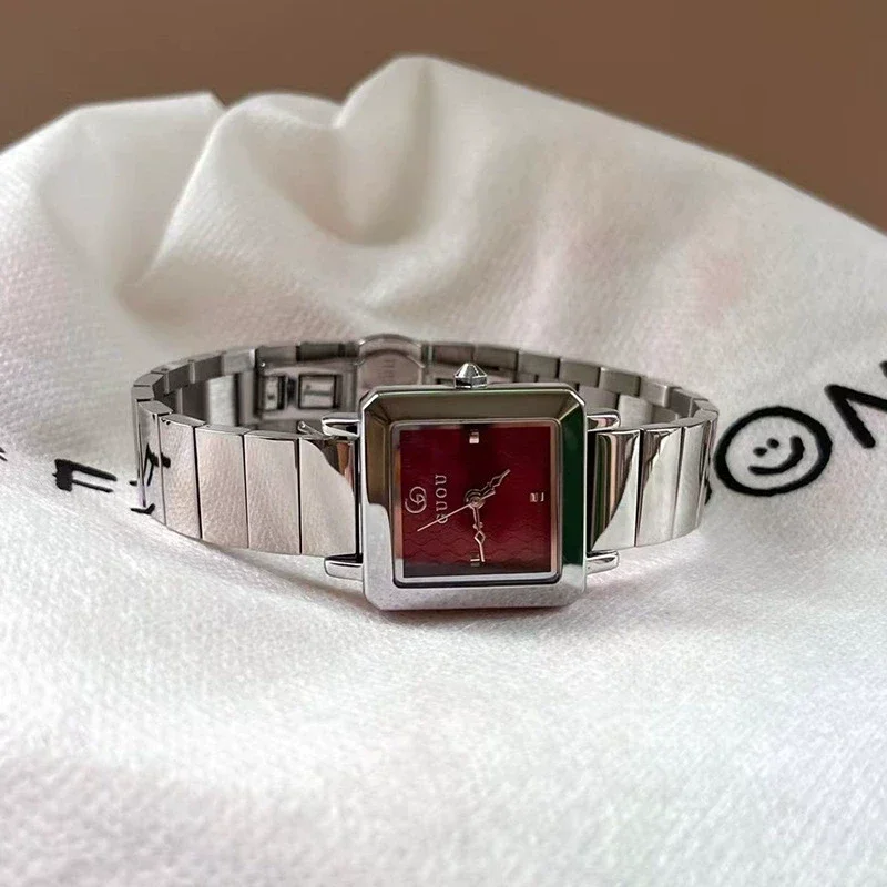 Entdecken Sie die zeitlose Eleganz der Gu'ou Quarzuhr für Damen im „Small Luxe“-Chanel-Stil. Diese exquisite Uhr vereint ein stilvolles, eckiges Zifferblatt mit einem robusten Edelstahlarmband, das sowohl Komfort als auch Langlebigkeit bietet. Mit einem Zifferblattdurchmesser von 30 mm und einer schlanken Dicke von nur 8 mm ist sie die perfekte Ergänzung für jedes Handgelenk. Die Uhr ist mit einem präzisen Quarzwerk ausgestattet und bietet eine Wasserdichtigkeit von bis zu 30 Metern (3 bar), sodass Sie sich keine Sorgen um Spritzwasser machen müssen. Wählen Sie aus verschiedenen Farbvarianten, darunter ein schwarzes Gehäuse mit schwarzem oder rotem Zifferblatt sowie ein silbernes Gehäuse mit weißem, schwarzem oder rotem Zifferblatt, um Ihren persönlichen Stil zu unterstreichen. Die flache, konische Krone und das verstärkte Mineralglas sorgen für eine ansprechende Optik und hohe Widerstandsfähigkeit. Mit der praktischen Faltschließe (Butterfly-Deployant) ist das An- und Ablegen der Uhr ein Kinderspiel. Gönnen Sie sich oder einem besonderen Menschen dieses modische Accessoire, das sowohl im Alltag als auch zu besonderen Anlässen glänzt.