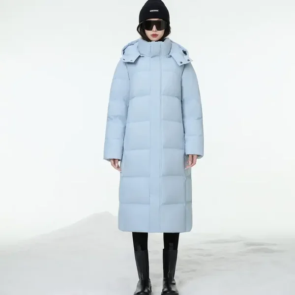 Entdecken Sie den ultimativen Damen-Langparka, der nicht nur durch seine elegante und businesslike Optik besticht, sondern auch durch seine herausragende Funktionalität. Dieser übergroße, knielange Daunenmantel ist mit 90% hochwertigen weißen Entendaunen gefüllt, die für eine außergewöhnliche Wärme und Behaglichkeit sorgen. Der extrawarme, dicke Polyesterstoff schützt Sie selbst an den kältesten Tagen, während der nicht abnehmbare Kapuzenkragen zusätzlichen Schutz bietet. Mit einer Länge von bis zu 100 cm und langen Ärmeln ist dieser Parka ideal für den Büroalltag und lässt sich mühelos mit verschiedenen Outfits kombinieren. Praktische Taschen bieten Platz für Ihre Essentials, während der robuste Reißverschluss für eine sichere und bequeme Handhabung sorgt. Erhältlich in den stilvollen Farben Schwarz und Gletscherblau sowie in den Größen S bis XXXL, ist dieser Langparka die perfekte Wahl für modebewusste Frauen, die Wert auf Stil und Funktionalität legen.