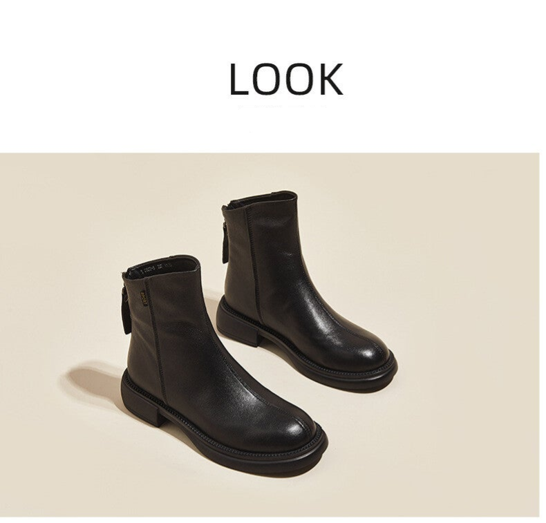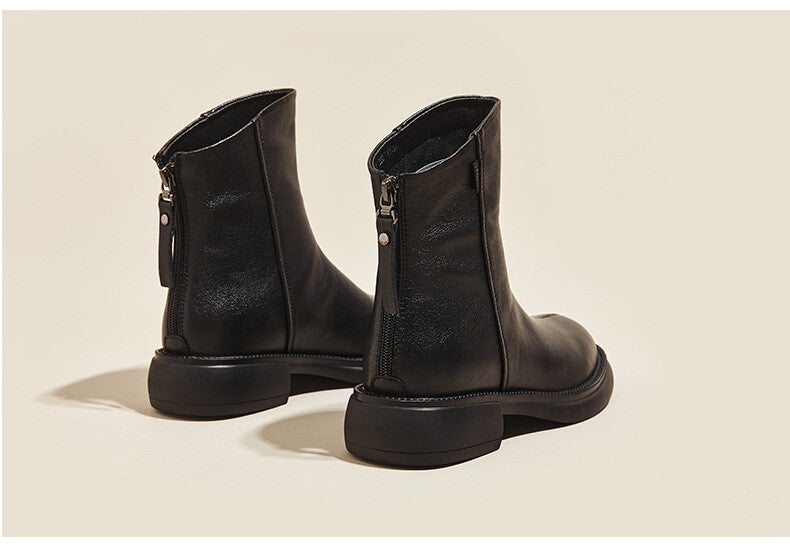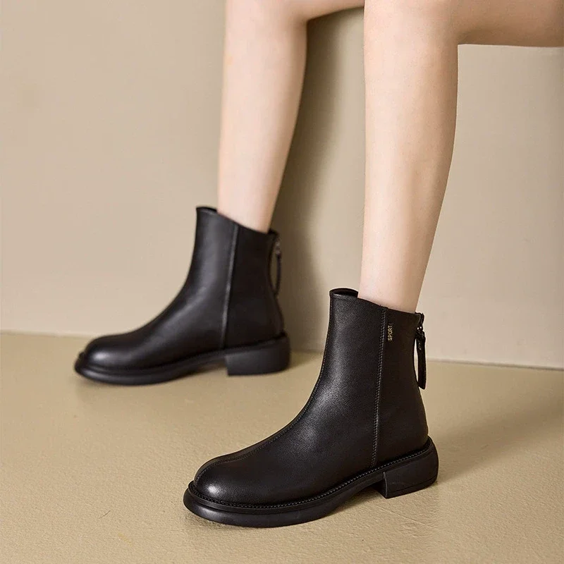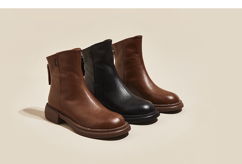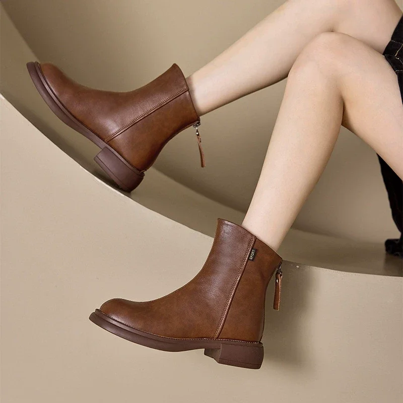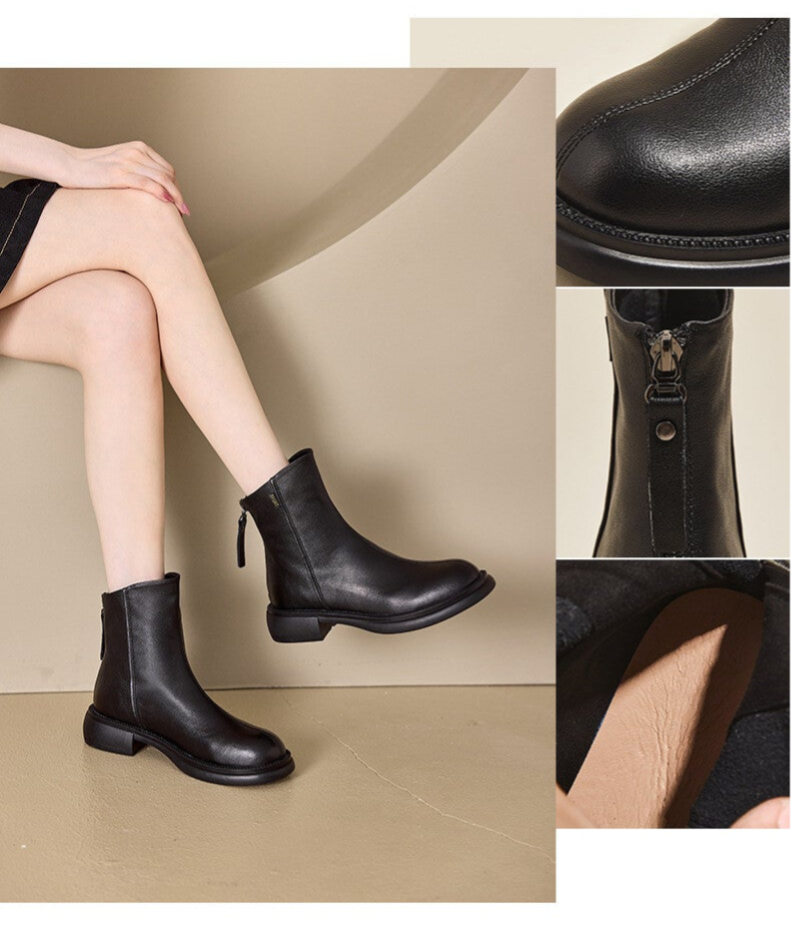 Damen-Stiefel, Herbst/Winter, Gefüttert, Echtleder, Martin-Stiefel, Hinterer Reißverschluss, Schlanker Schnitt, Retro Große Größen, Freizeit