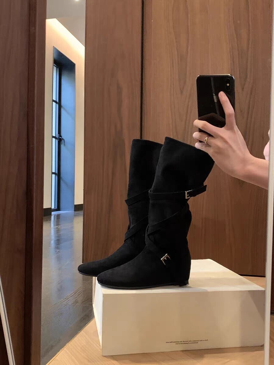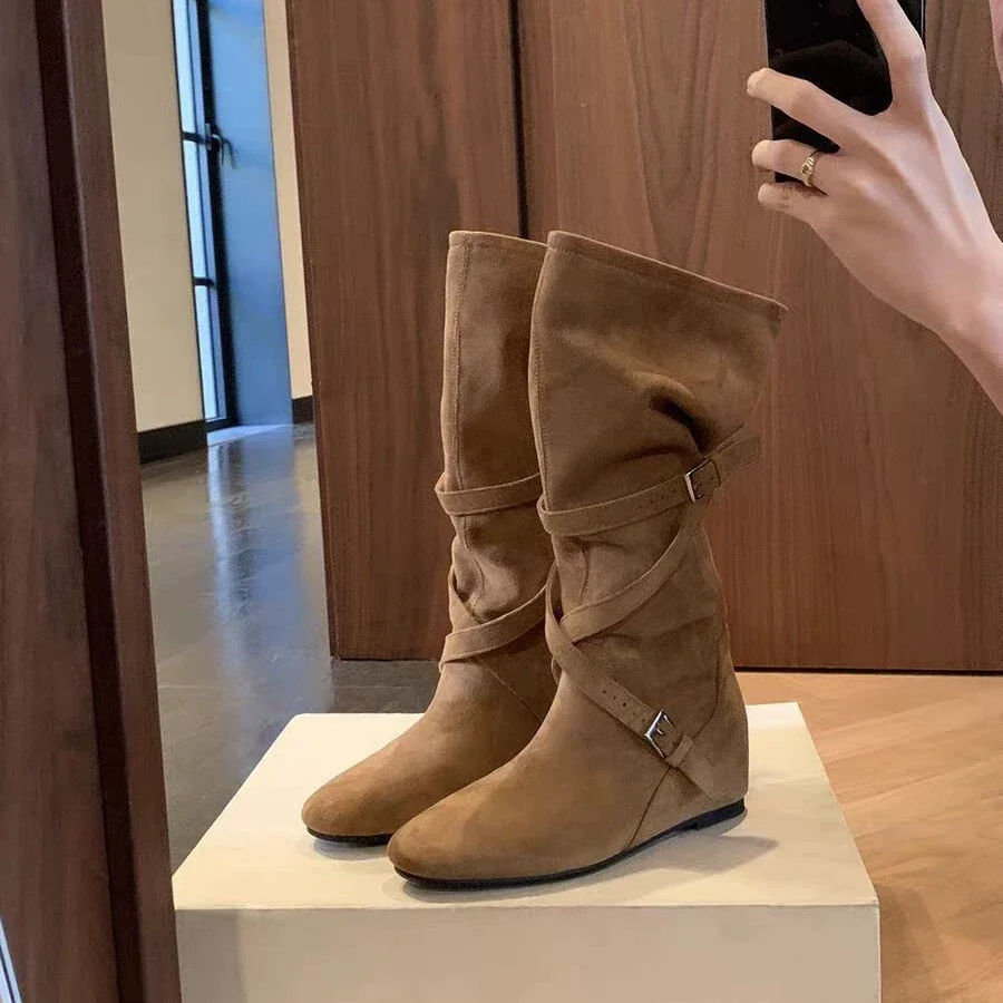 Entdecken Sie die StudioLee Grape Mom Damen Stiefeletten – die perfekte Kombination aus Stil und Komfort. Mit einem eleganten 6 cm hohen Keilabsatz und einem modischen Plateau bieten diese Stiefel nicht nur einen tollen Look, sondern auch hervorragenden Halt und Stabilität. Das hochwertige Veloursleder sorgt für eine luxuriöse Optik, während das Innenfutter aus feinstem Lammleder und Tüll für ein angenehmes Tragegefühl sorgt. Die runde Zehenform und der praktische Schlupfverschluss machen das An- und Ausziehen zum Kinderspiel. Erhältlich in den trendigen Farben Olivbraun, Khaki, Ebenholzbraun und Schwarz, sind diese Martinistiefel ein Must-Have für jede modebewusste Frau. Wählen Sie aus einer Vielzahl von Größen von 31 bis 40 und verleihen Sie Ihrem Outfit mit den StudioLee Grape Mom Stiefeletten einen Hauch von Eleganz und Komfort.