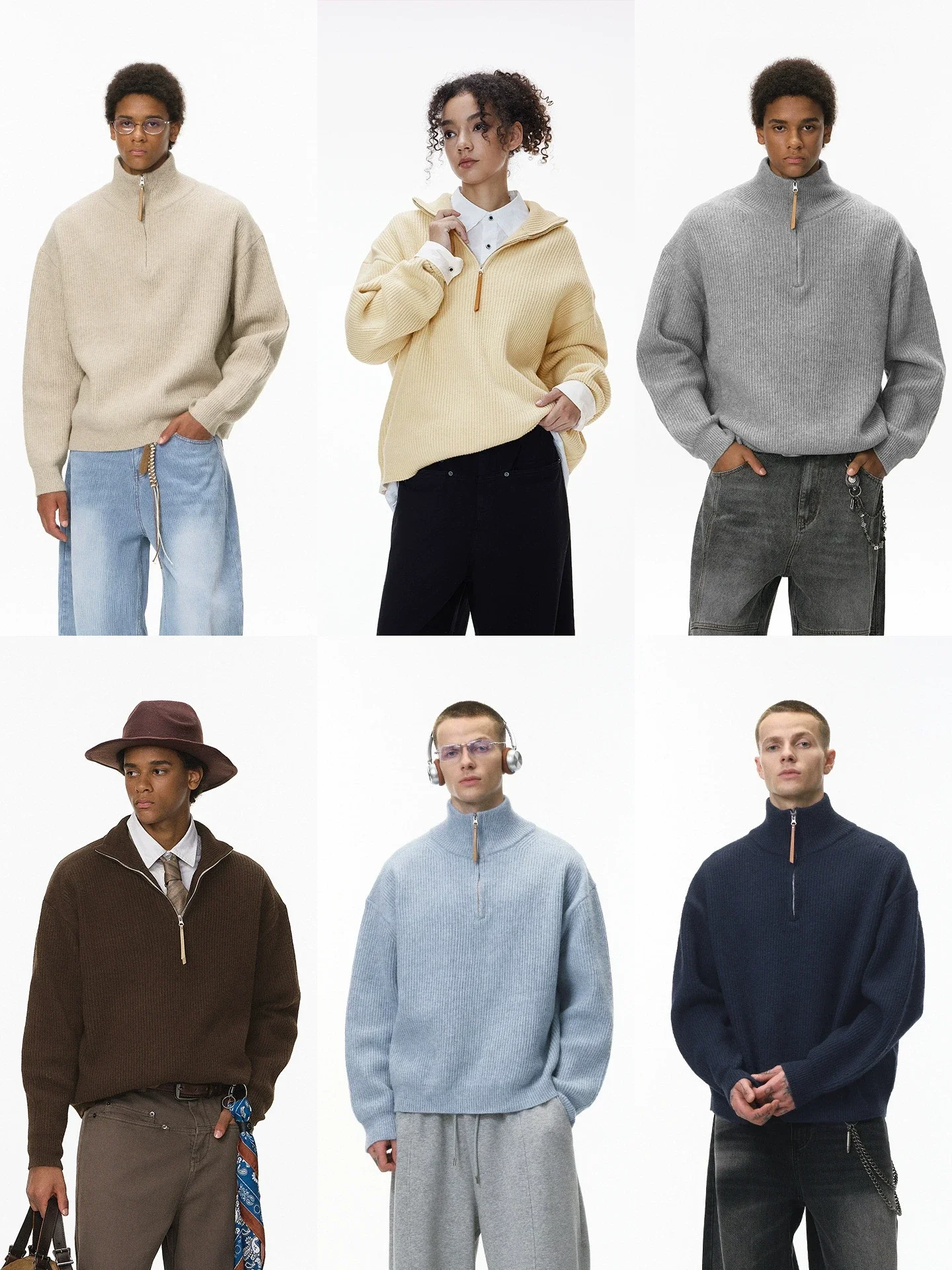 Halb-Reißverschluss Rollkragenpullover, Winter - Retro Streetstyle, Old-Money-Look, lässiges Oberteil