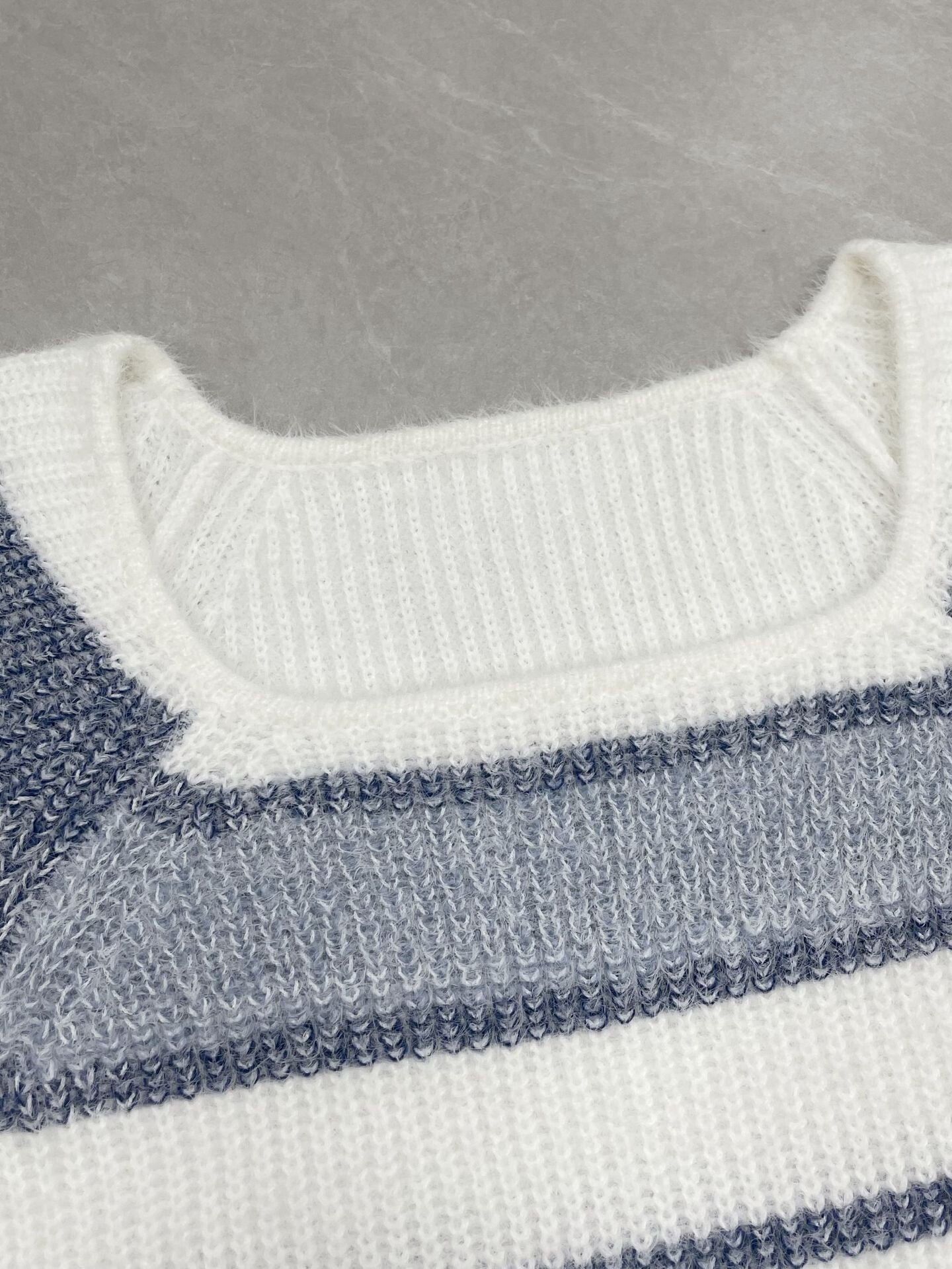 Damen-Pullover, figurbetont mit eckigem Ausschnitt, Streifenmuster & Farbkontrast. Nachgemachtes Nerzfell, ultraweich – 'Hot Girl'-Look für Herbst/Winter