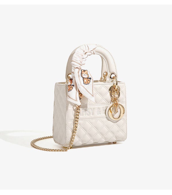 Entdecken Sie die ChvainsKuen Diana-Tasche, ein Meisterwerk der Eleganz und Funktionalität, das sich perfekt als Hand- und Schultertasche für die moderne Frau eignet. Inspiriert vom zeitlosen Stil der Lady Dior, vereint diese Tasche urbanes Flair mit minimalistischen Designelementen. Hergestellt aus hochwertigem echtem Leder, bietet sie nicht nur eine luxuriöse Optik, sondern auch eine bemerkenswerte Langlebigkeit. Die charakteristische Rautensteppung und das dezente Alphabet-Logo verleihen der Tasche einen Hauch von Raffinesse. Mit einem großzügigen Pufftaschen-Design und einem praktischen Reißverschlussfach im Inneren, bietet die Diana-Tasche ausreichend Platz für all Ihre Essentials, während der Magnetverschluss für eine sichere Aufbewahrung sorgt. Wählen Sie aus stilvollen Farben wie Off-White, Schwarz, Mattrosa und Mattschwarz und setzen Sie ein modisches Statement, das sowohl im Alltag als auch zu besonderen Anlässen glänzt.