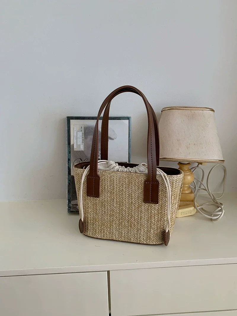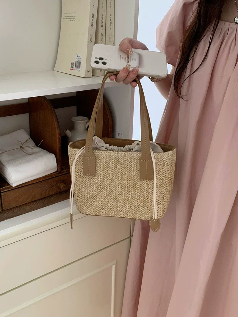 Geflochtene Mini-Tasche - Ins-Trend, Leichter Shopper, Strandtasche oder Schultertasche für Urlaub und Alltag