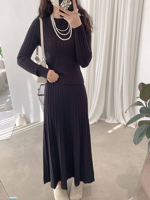 Neue Herbst-/Winterkollektion, Minimalistisches taillenbetontes, schlankmachendes Design, Strickpullover + Rock-Zweiteiler für Damen