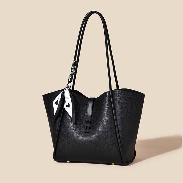Entdecken Sie die perfekte Kombination aus Stil und Funktionalität mit unserer hochwertigen Damentasche im urban-minimalistischen Design. Diese große Shopper-Tasche bietet nicht nur eine beeindruckende Kapazität, sondern auch eine durchdachte Innenaufteilung, die ein Reißverschluss-Geheimfach, ein praktisches Handyfach und ein zusätzliches Reißverschluss-Innenfach umfasst. Hergestellt aus strapazierfähigem PU-Kunstleder und gefüttert mit hochwertigem Polyester, ist diese Tasche sowohl weich im Griff als auch robust genug für den Alltag. Der elegante Magnetverschluss sorgt für Sicherheit und schnellen Zugriff auf Ihre Essentials, während die zwei Doppeltrageriemen für optimalen Tragekomfort sorgen. Mit den Maßen von 27*26*13 cm und in den stilvollen Farben Keksfarbe, Schokoladenbraun und klassisches Schwarz ist diese flügelförmige Tasche (Wing Bag) der ideale Begleiter für Business-Meetings oder entspannte Stadtbummel. Als besonderes Highlight wird die Tasche mit einer gebundenen Seidenschleife geliefert, die ihr einen zusätzlichen Hauch von Eleganz verleiht. Gönnen Sie sich diese vielseitige Damentasche und setzen Sie ein modisches Statement in Ihrem Alltag!