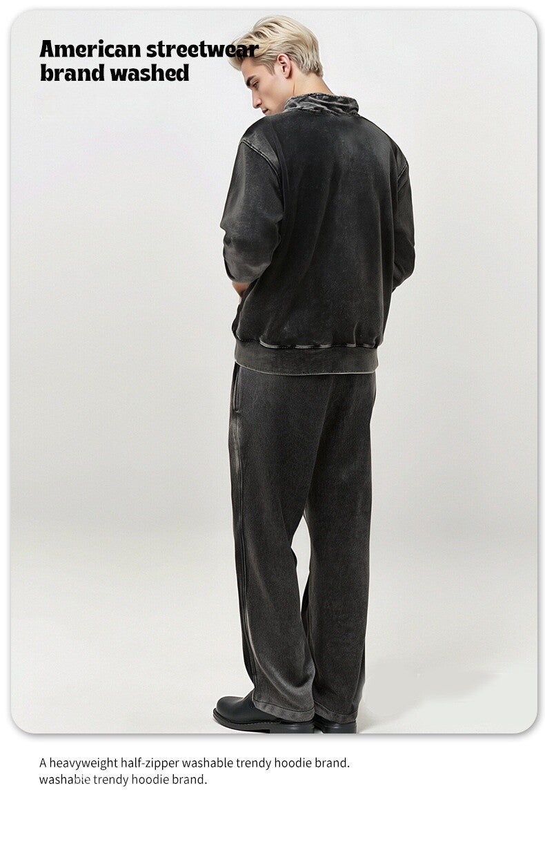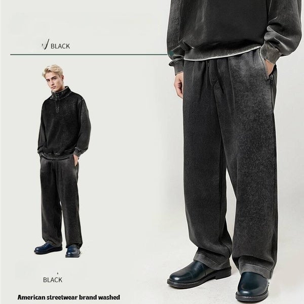 Streetwear, gewaschene Baumwollhose, gerades Bein, weit geschnitten, unisex, Freizeit-/Sportbekleidung