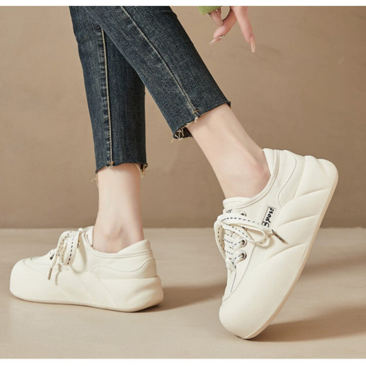 Entdecken Sie die perfekten Frauen-Sneaker für die Frühlings- und Herbstsaison – unsere trendigen Chunky-Sneaker in klassischem Weiß. Diese vielseitigen Freizeit-Bulky-Schuhe kombinieren stilvolles Pop-Art-Design mit herausragendem Komfort. Hergestellt aus hochwertigem Rindleder, bieten sie nicht nur eine ansprechende Optik, sondern auch Langlebigkeit und Strapazierfähigkeit. Das atmungsaktive Mesh-Futter sorgt für ein angenehmes Fußklima, während die Leder-Einlegesohle zusätzlichen Komfort bietet. Die Gummisohle ist abriebfest und garantiert einen sicheren Halt auf verschiedenen Untergründen. Mit einem mittelhohen Absatz und einer runden Schuhspitzenform sind diese Sneakers nicht nur modisch, sondern auch funktional. Die praktische Schnürung ermöglicht eine individuelle Anpassung, während die niedrige Schaftlänge für einen lässigen Look sorgt. Erhältlich in den Größen 35 bis 40 und in den Farben Schwarz und Weiß, sind diese Sneakers die ideale Wahl für modebewusste Frauen, die sowohl Stil als auch Komfort schätzen. Verleihen Sie Ihrem Outfit einen trendigen Akzent und genießen Sie jeden Schritt in diesen angesagten Chunky-Sneakern!