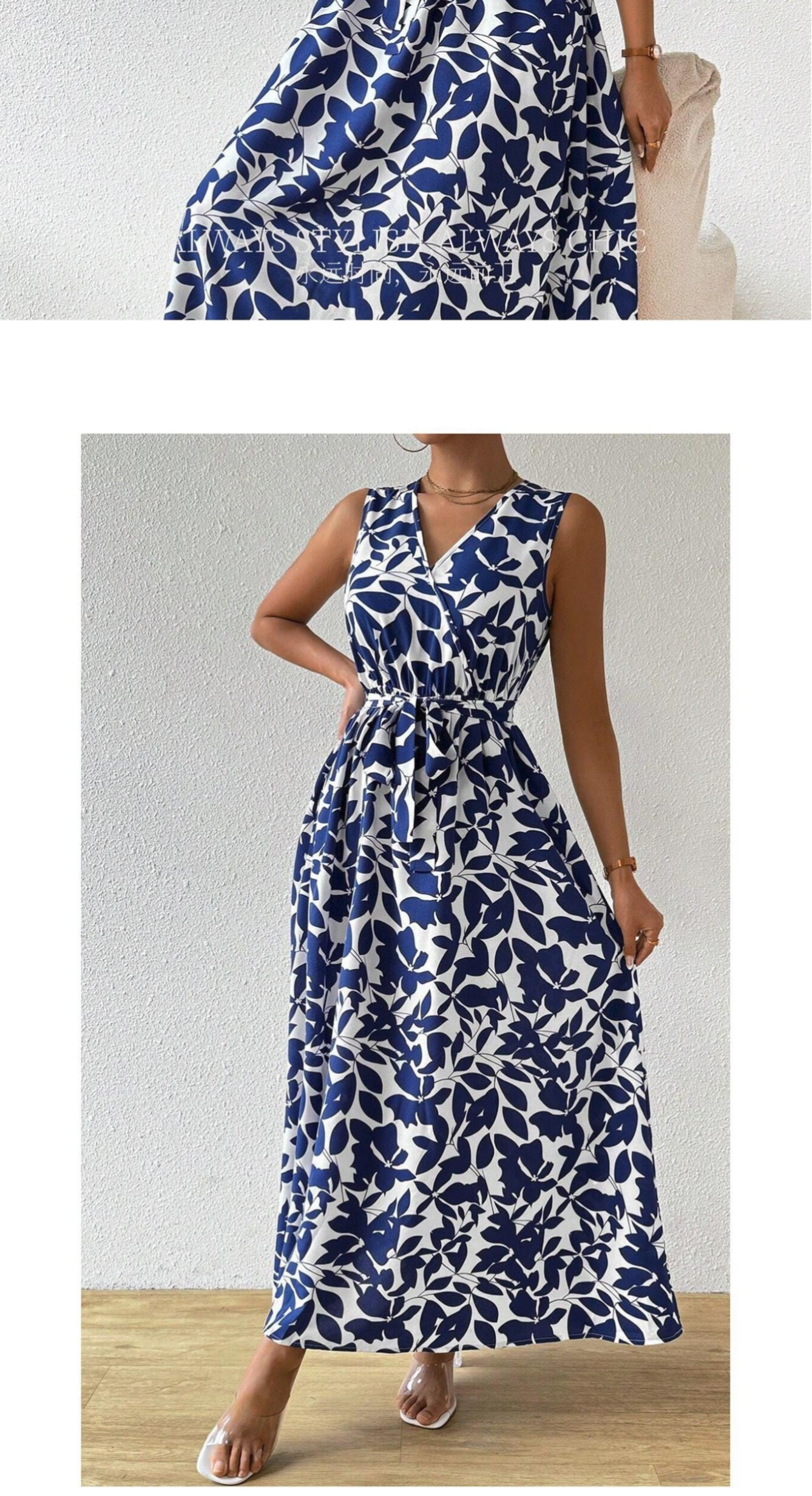 Entdecken Sie unser elegantes Maxikleid im französischen Stil, das Ihre Garderobe mit einem Hauch von Raffinesse bereichert. Dieses wunderschöne Damenkleid besticht durch sein florales Muster, das mit einem sanften Blau harmoniert und perfekt für jede Gelegenheit ist – sei es im Büro oder bei einem entspannten Abendessen. Der V-Ausschnitt und das verstellbare Bindeband betonen Ihre Taille und sorgen für eine schmeichelhafte Silhouette, während der übergroße Schwenkrock für Bewegungsfreiheit und einen Hauch von Eleganz sorgt. Hergestellt aus hochwertigem Polyester, bietet das Kleid nicht nur einen angenehmen Tragekomfort, sondern ist auch pflegeleicht. Mit ärmellosem Design und einem praktischen Überziehverschluss ist dieses Maxikleid die ideale Wahl für stilbewusste Frauen, die sowohl chic als auch bequem gekleidet sein möchten. Erhältlich in den Größen S bis XXL, ist es der perfekte Begleiter für jede Saison. Verleihen Sie Ihrem Look einen französischen Flair und bestellen Sie noch heute!