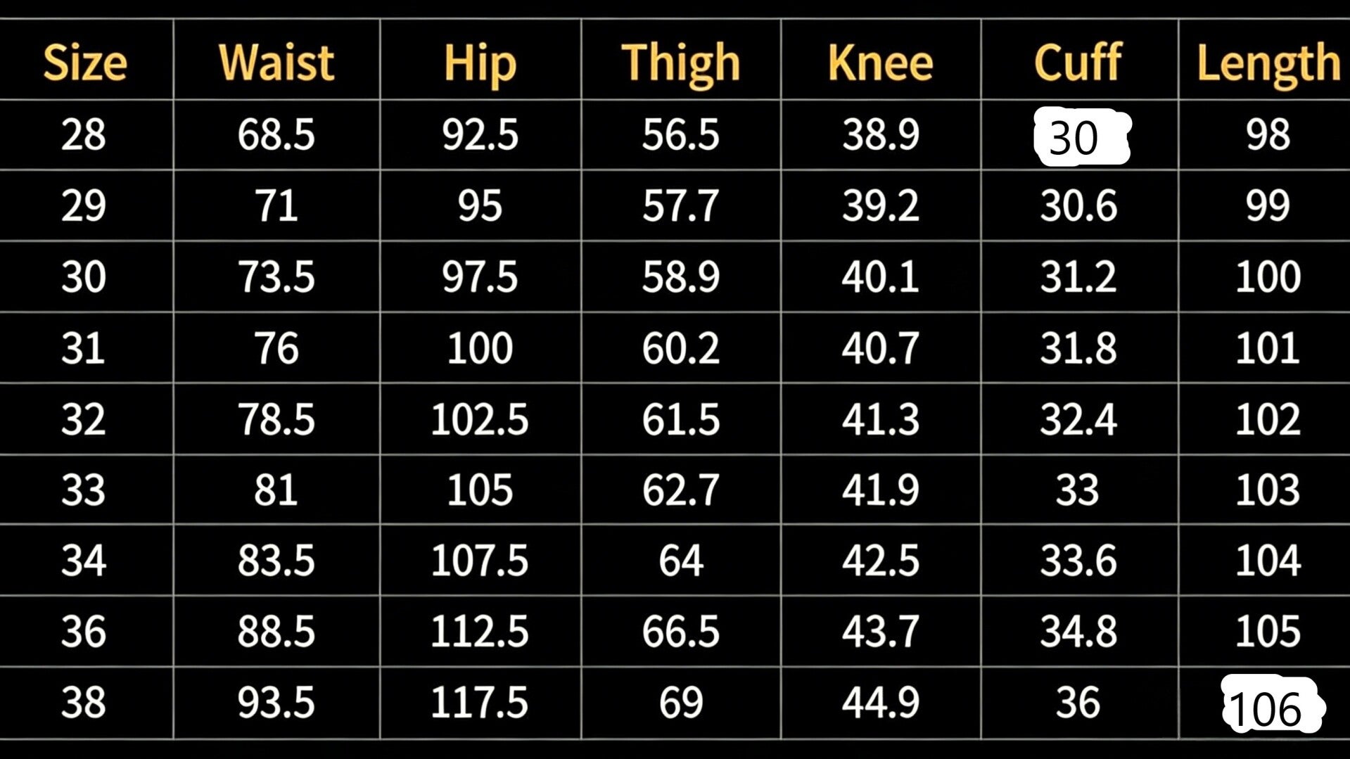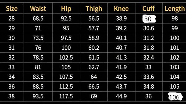 Größen 28, 29, 30, 31, 32, 33, 34, 36, 38