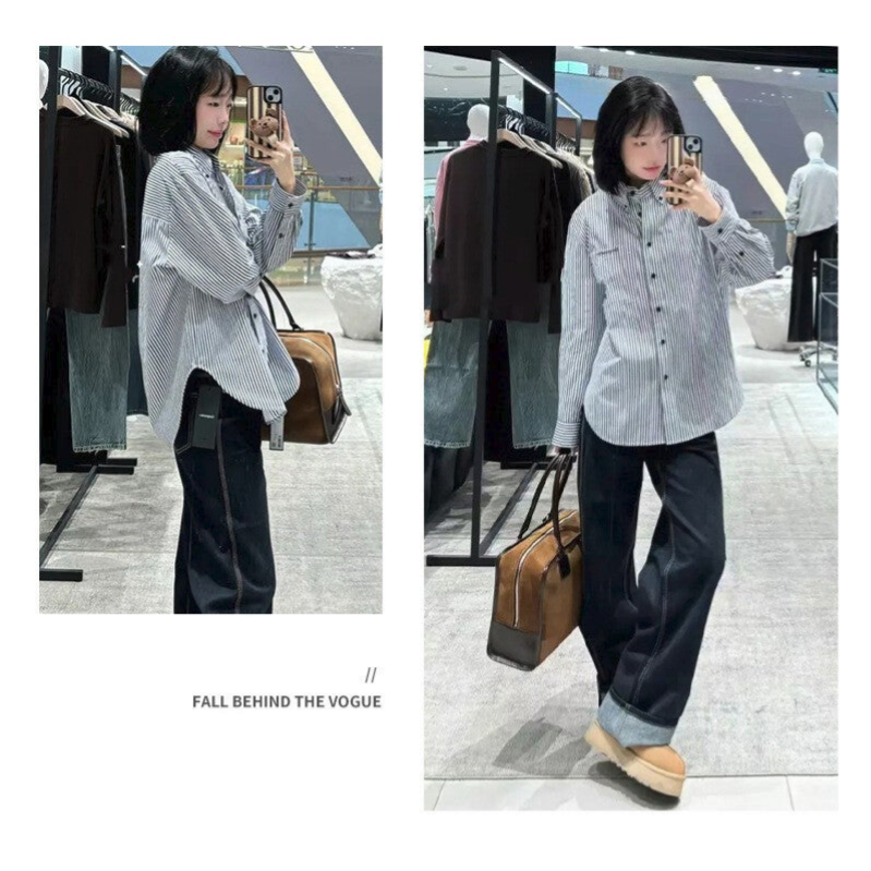 Hochfeine, dicht gewebte reine Baumwoll-Streifenbluse, Damen-Freizeit-Oberteil