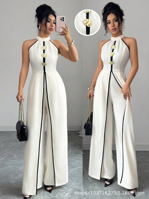 Damenmoden 2026 Sommer – westlicher Look, Punktdruck, Rundhals, Jumpsuit im Kleid-Stil