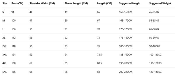 Größen S, M, L, XL, XXL, XXXL, 4XL, 5XL