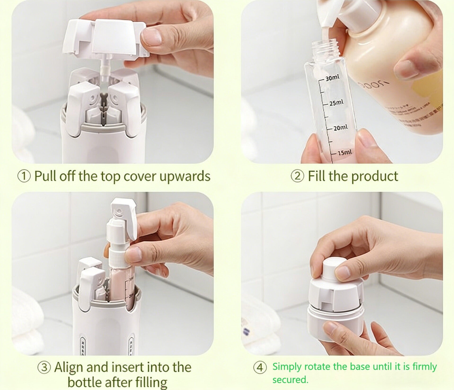 Zubehör: Pumpkopf, PETG-Flasche, Sprühkopf, Sprühkopf + Cremekopf, Flaschenkörper, Drehverschluss + Inneneinsatz