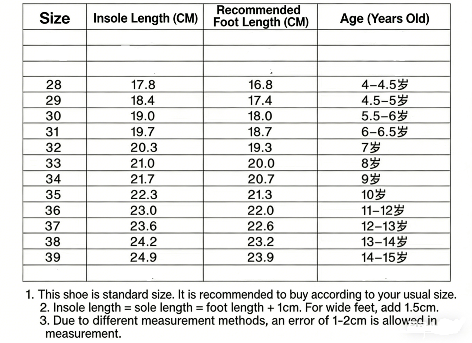 Größen: 28, 29, 30, 31, 32, 33, 34, 35, 36, 37, 38, 39