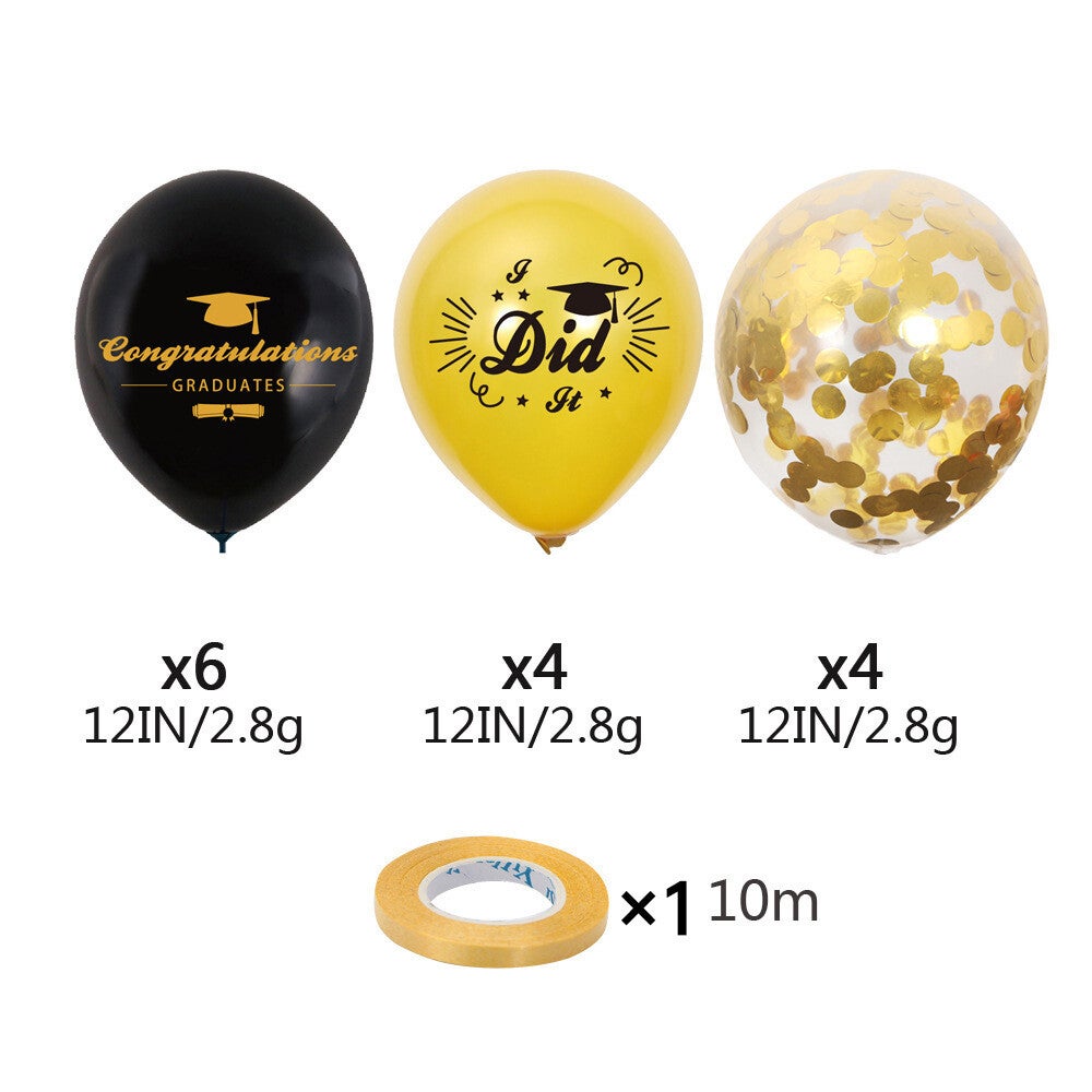 Abschlussfeier Dekoration 2026 | 'Congrats Grad' Banner, Spiral-Aufhänger & Luftballons im Set - Schwarz Gold