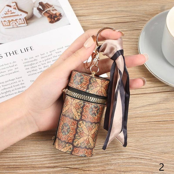 Pappoptik-Holzmuster Lippenstifttasche, runde Dose, modische Münzbörse, tragbarer multifunktionaler Taschenanhänger