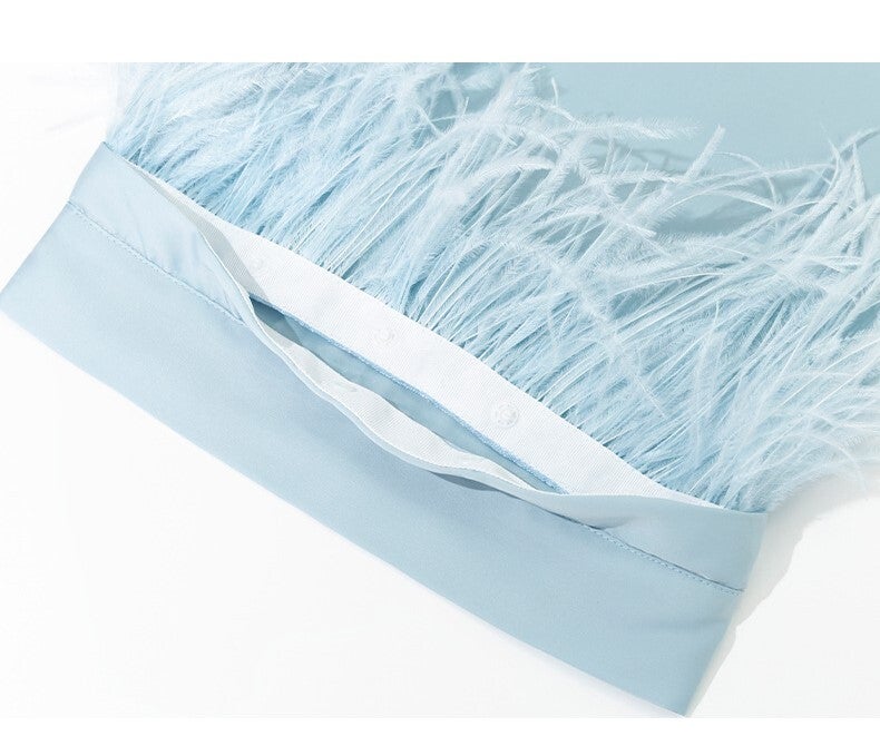 Neue Damen-Bademäntel aus Acetat-Stoff mit Straußenfedern, Sommer-Laufsteg-Umhang, sexy Pyjamas und Damen-Hausbekleidung