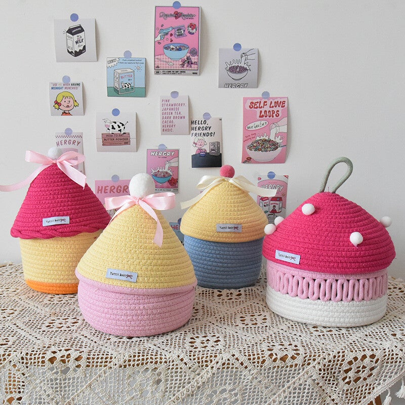 Mit Deckel Aufbewahrungskorb, süßer Aufbewahrungskorb, Baumwollkorb, Baumwollschnur, Desktop, Kosmetik, Spielzeug, Aufbewahrungskorb, auch als Deko geeignet